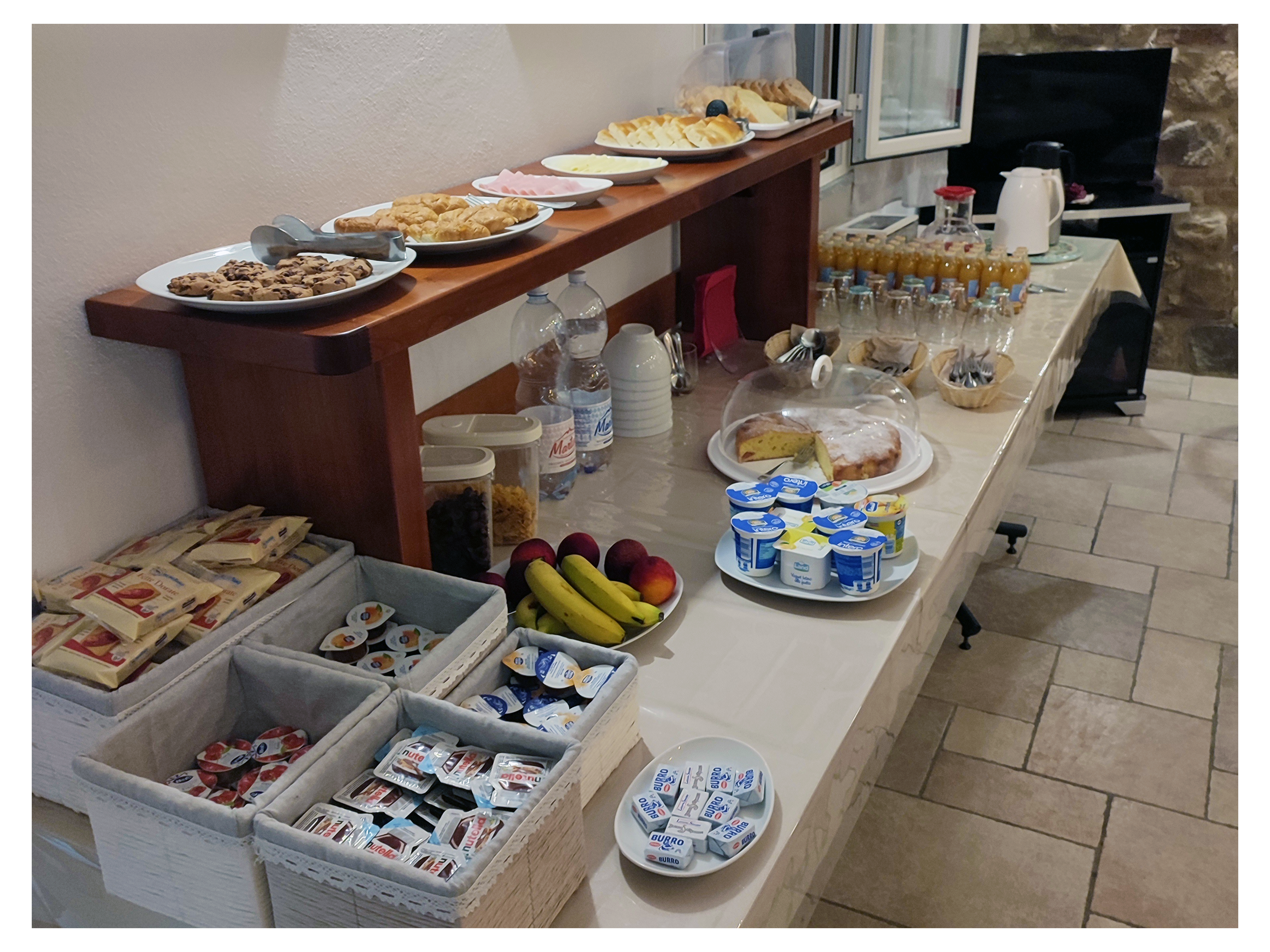 Potrete gustare torte fatte in casa, dolci, cereali, fette biscottate, pane, tisane, caffè espresso, latte, succhi di frutta, yogurt, marmellate e altro ancora...